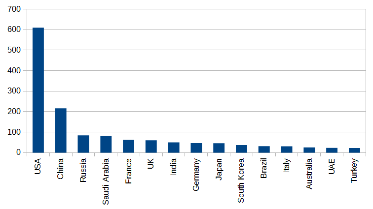 In absolute figures, the United States overwhelms all other countries in the world—we spend as much as at least the next 10 combined.