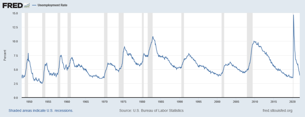 Labor markets have been behaving quite strangely lately, due to COVID and its consequences. As I said in an earlier post, the COVID recession was the one recession I can think of that actually seemed to follow Real Business Cycle theory—where it was labor supply, not demand, that drove employment.