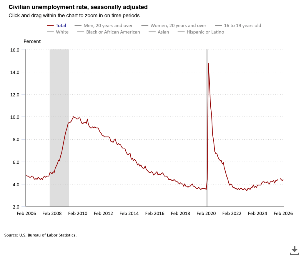 If you look at the employment levelthe absolute number of people employed—it looks shockingly flat since 2023.