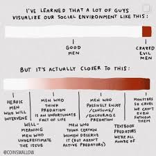 Actually I think men are even less aware of which men are dangerous than women, because women seem to have whisper networks that share this kind of information, but they rarely think to include any men in those networks. Maybe they don’t trust us enough? But I don’t understand how I’m expected to intervene when nobody has even told me who I should be intervening against.